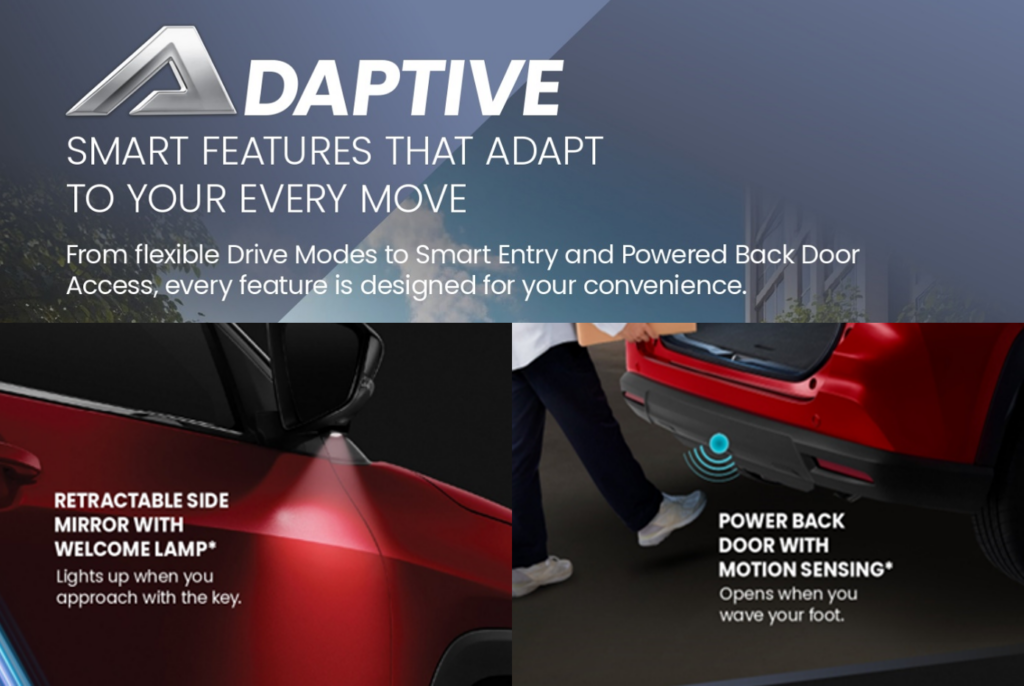 Perodua Traz direka untuk menawarkan kemudahan terbaik, dengan ciri-ciri adaptif yang memenuhi setiap keperluan anda. Kenderaan ini dilengkapi dengan Mod Pemanduan Fleksibel, yang membolehkan anda menyesuaikan pengalaman pemanduan mengikut keinginan dan keadaan jalan raya. Sistem Smart Entry menambah satu lapisan kemudahan tambahan, membolehkan anda membuka dan mengakses kenderaan tanpa perlu mengeluarkan kunci dari poket atau beg. Untuk fungsi tambahan, Traz juga mempunyai Cermin Sisi yang Boleh Ditarik dengan Lampu Selamat Datang, yang menyala secara automatik apabila anda menghampiri kereta, memberikan sentuhan gaya dan bantuan praktikal di persekitaran yang kurang cahaya. Selain itu, Pintu Belakang Kuasa dengan Teknologi Penderiaan Gerakan memudahkan proses memuat dan mengeluarkan barang dari kenderaan. Dengan hanya melambai kaki di bawah bamper belakang, pintu belakang akan dibuka secara automatik, menjadikannya amat berguna apabila tangan anda penuh. Ciri-ciri yang penuh dengan pertimbangan ini menonjolkan komitmen Perodua Traz untuk meningkatkan kemudahan, menjadikan setiap perjalanan lebih lancar dan lebih menyenangkan.